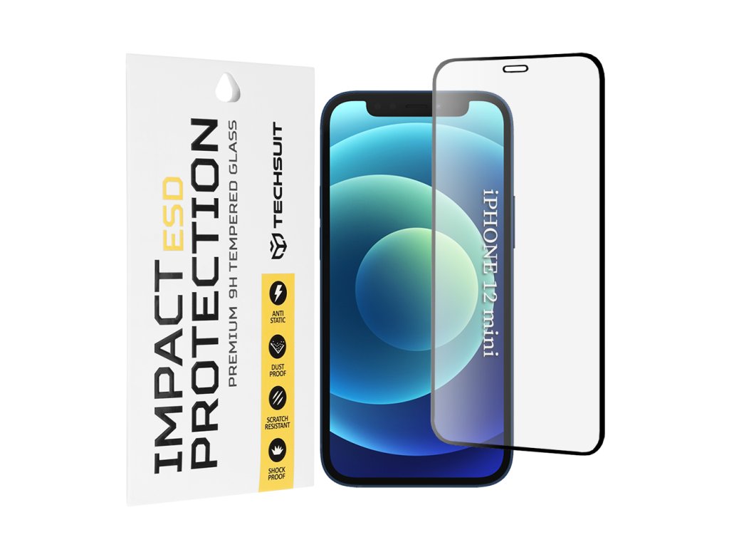 Techsuit – ESD ochranné tvrzené sklo na iPhone 12 mini – černé
