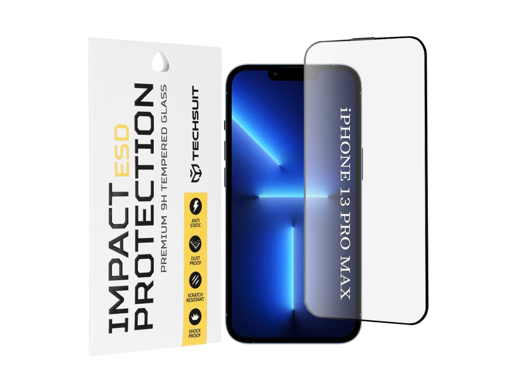 Techsuit – ESD ochranné tvrzené sklo na iPhone 13 Pro Max – černé