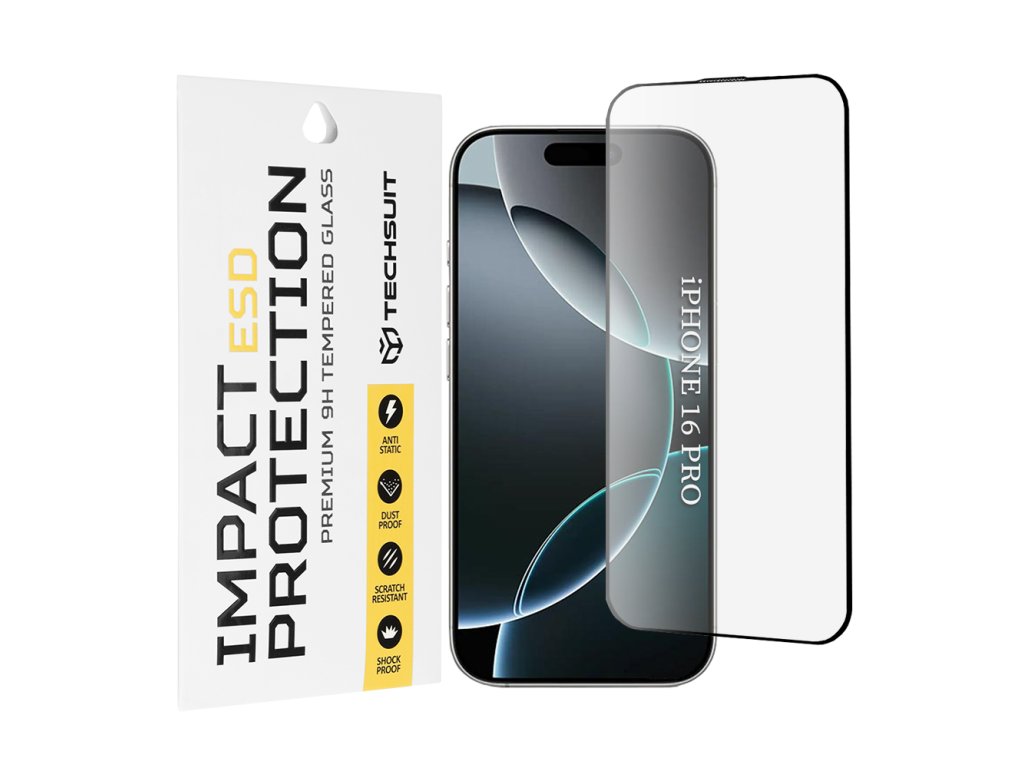 Techsuit – ESD ochranné tvrzené sklo na iPhone 16 Pro – černé