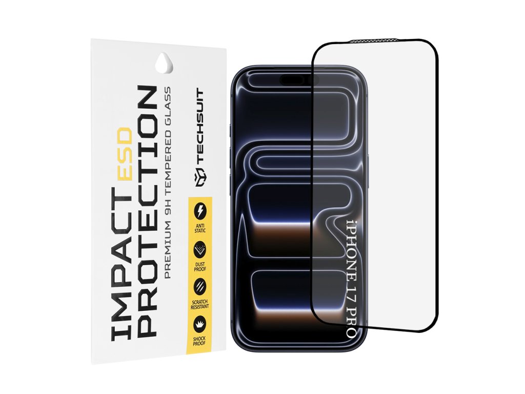 Techsuit – ESD ochranné tvrzené sklo na iPhone 17 Pro – černé