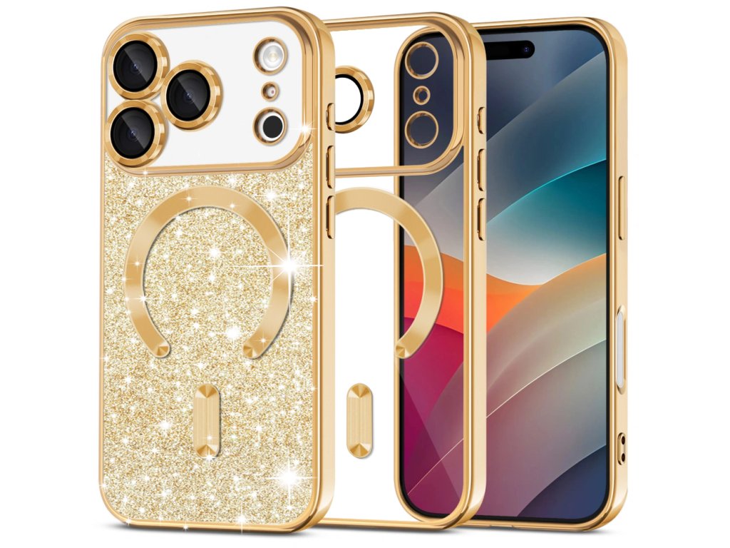 Techsuit – Luxury Glitter MagSafe kryt pro iPhone 17 Pro Max – zlatý