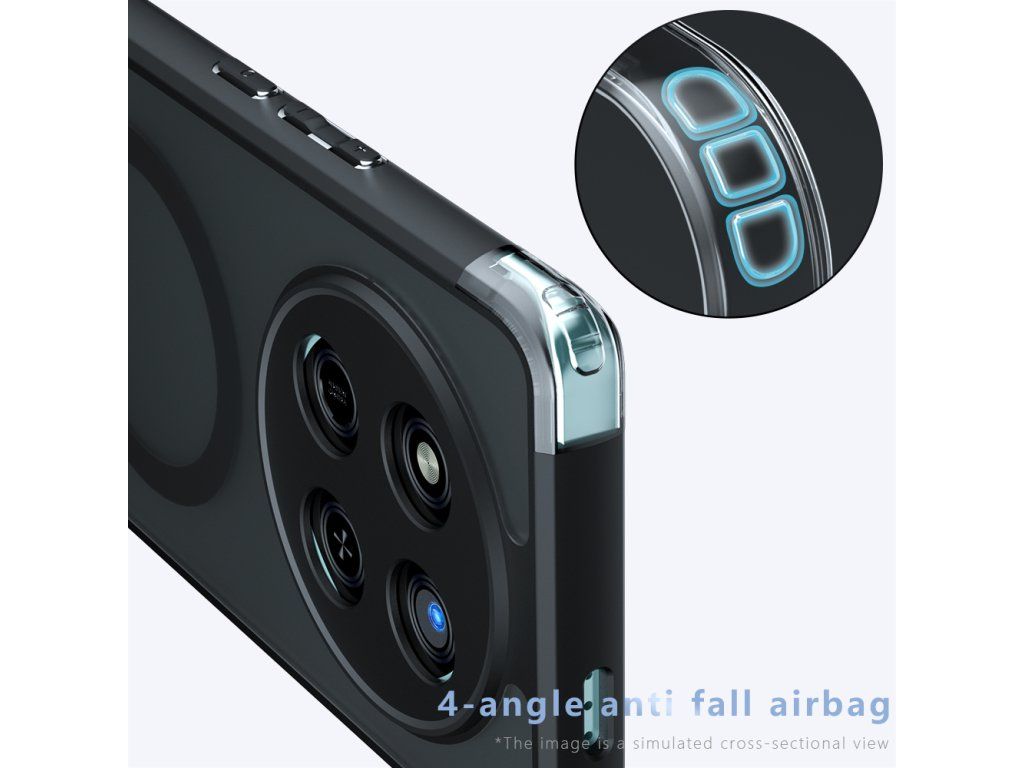 Pouzdro Honor Magic7 Pro integruje diskrétní airbagy v rozích pro pohlcení a rovnoměrné rozložení síly nárazu, minimalizující riziko poškození.