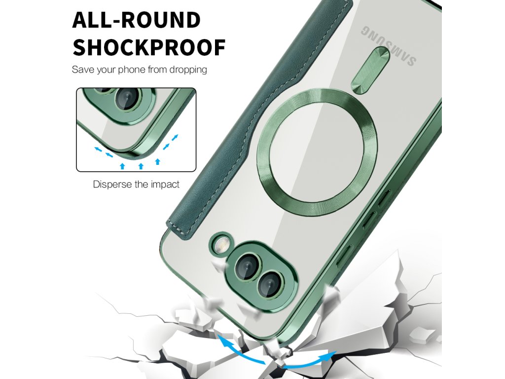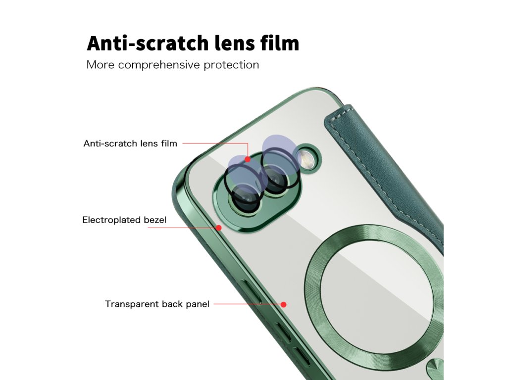 Peněženkový kryt Google Pixel 9a umožňuje okamžité zarovnání s jakýmkoliv doplňkem MagSafe, bez klouzání a bez rušení.