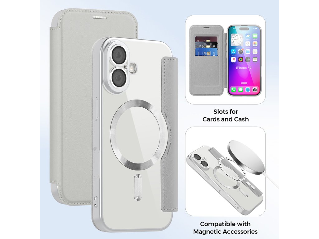 Techsuit – SmartMag Book Case knížkové pouzdro na iPhone 17 – šedé