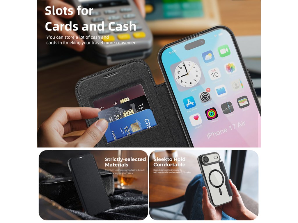 Kryt peněženky iPhone 17 Air umožňuje okamžité zarovnání s jakýmkoliv MagSafe příslušenstvím, bez sklouzávání a bez interferencí.