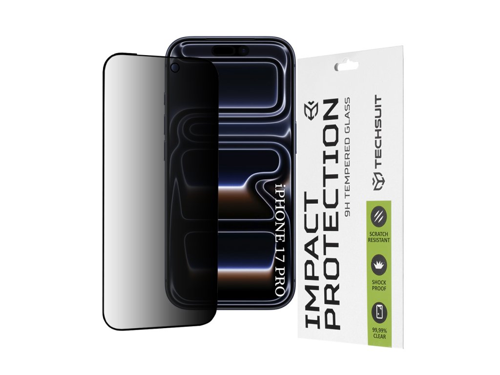Objevte novou⭐ privacy fólii pro iPhone 17 Pro! Odolná proti nárazům, otiskům prstů a poškrábání, skleněná fólie Techsuit vám zajistí požadované soukromí!