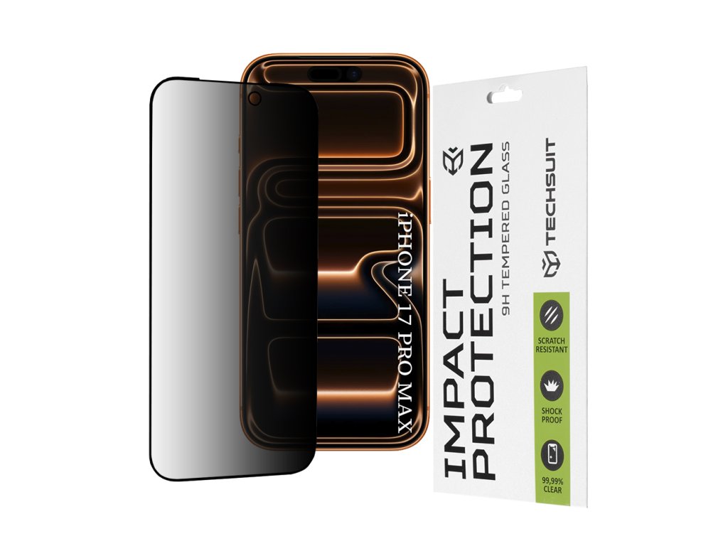 Objevte novou⭐folie privacy iPhone 17 Pro Max! Odolná proti nárazům, otiskům prstů a škrábancům, skleněná folie Techsuit vám zajistí požadované soukromí!