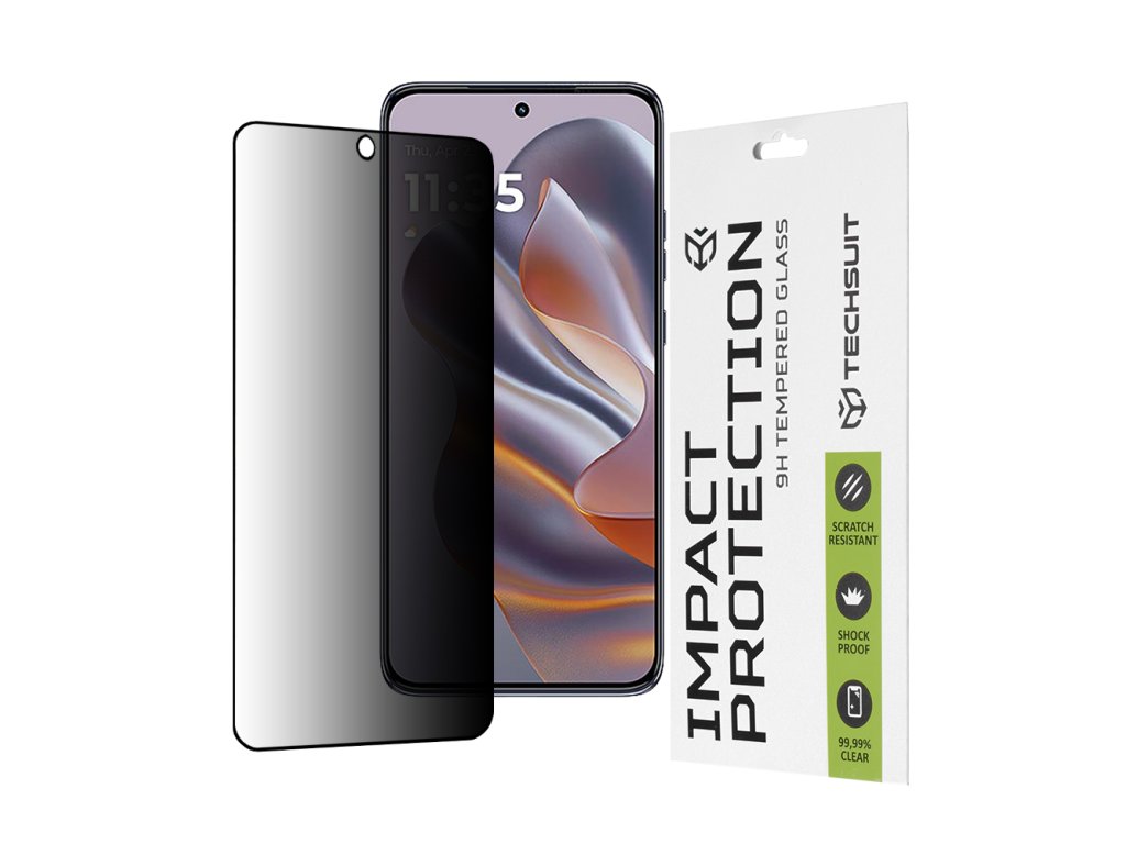 Objevte novou⭐privacy fólii Motorola Edge 50 Neo! Odolná proti nárazům, otiskům prstů a poškrábání, skleněná fólie Techsuit vám zajišťuje požadované soukromí!