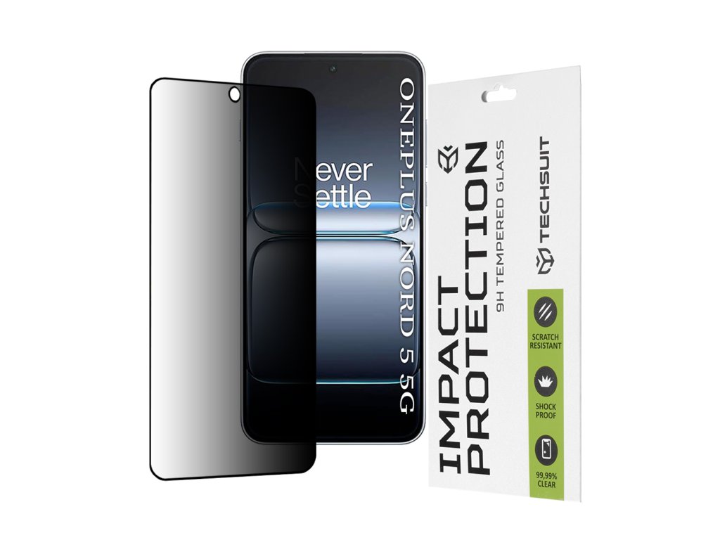 Objevte novou⭐fólii privacy OnePlus Nord 5! Odolná vůči nárazu, otiskům prstů a škrábancům, skleněná fólie Techsuit vám zajistí požadované soukromí!