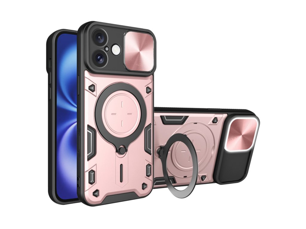 Techsuit CamGuard Pro kryt na iPhone 16 – růžovo-zlatý