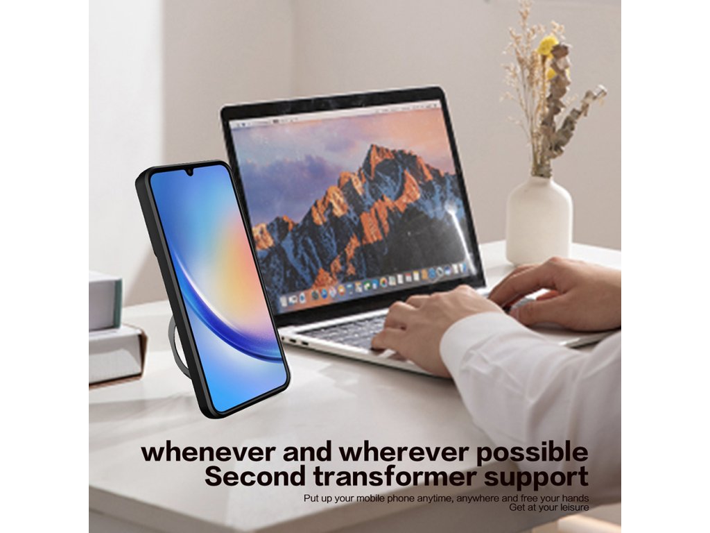 Ušetřete rodinný rozpočet investováním jednou do multifunkčního, nepostradatelného produktu. Pouzdro Samsung Galaxy A55 5G je vybaveno otočným prstencem z nerezové oceli, který slouží jako stojan na telefon, aby bylo snazší sledovat média v režimu na šířku.