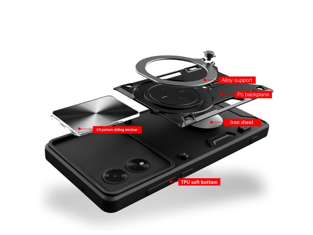 Ušetřete rodinný rozpočet investováním jednou do multifunkčního, nepostradatelného produktu. Pouzdro Oppo A60 je vybaveno otočným prstencem z nerezové oceli, který slouží jako stojánek pro telefon, a usnadňuje sledování mediálního obsahu v režimu krajiny.