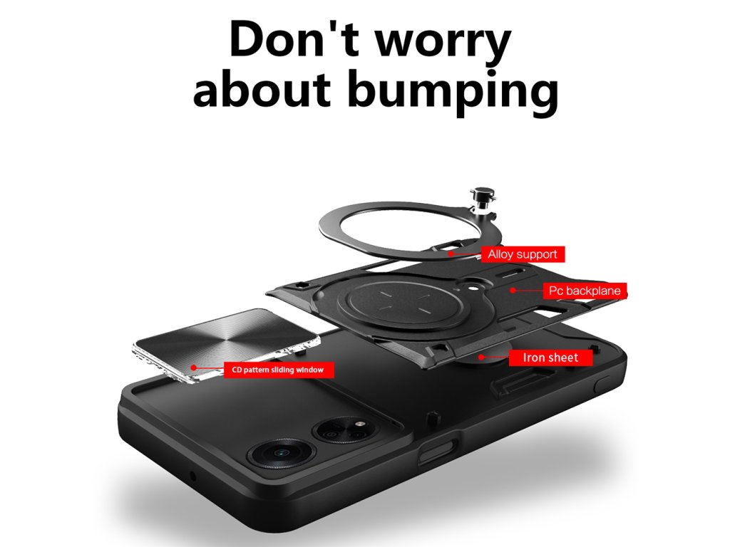 Ušetřete rodinný rozpočet investováním jednou do nepostradatelného multifunkčního produktu. Pouzdro Oppo A98 5G je vybaveno otočným kroužkem z nerezové oceli sloužícím jako stojánek pro telefon, který usnadňuje sledování médií v horizontálním formátu.