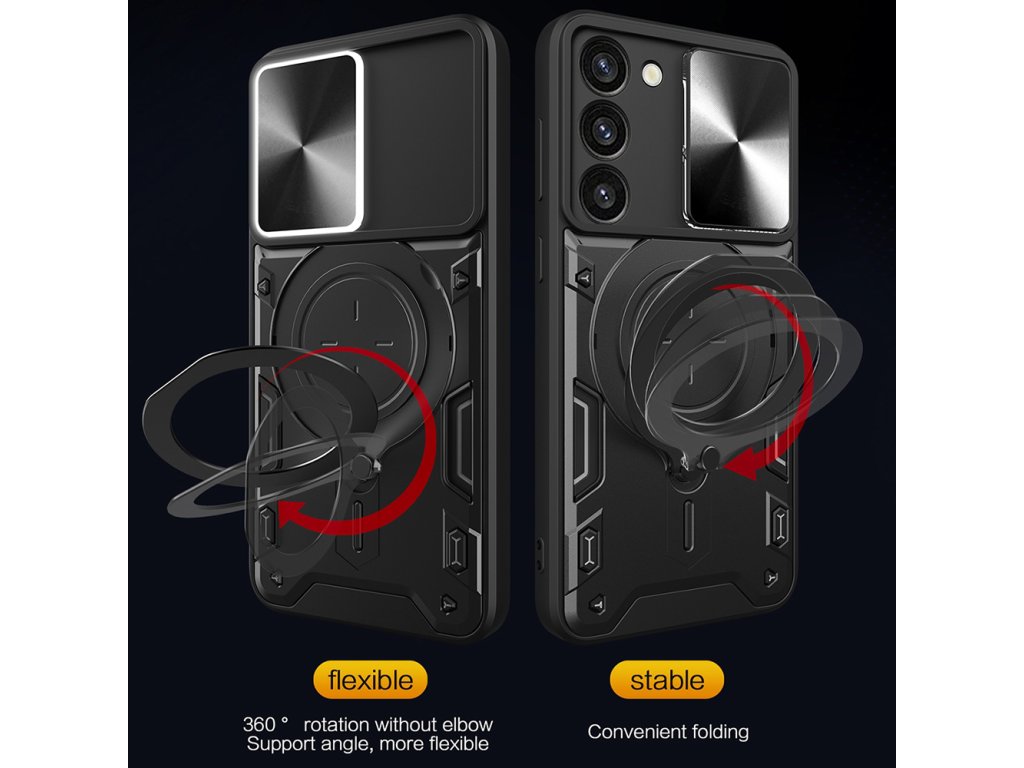 Ušetřete rodinný rozpočet investováním jedinou dobou do multifunkčního, nepostradatelného produktu. Pouzdro Samsung Galaxy S23 Plus je vybaveno otočným ocelovým prstenem jako stojanem pro telefon, což usnadňuje sledování multimediálního obsahu v režimu na šířku.
