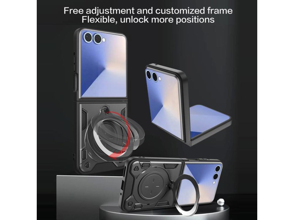 Ušetřete rodinný rozpočet investicí do jednoúčelového multifunkčního produktu, který je nezbytný. Pouzdro Samsung Galaxy Z Flip7 je vybaveno otočným kroužkem z nerezové oceli fungující jako stojánek na telefon, který usnadňuje sledování mediálního obsahu v režimu na šířku.