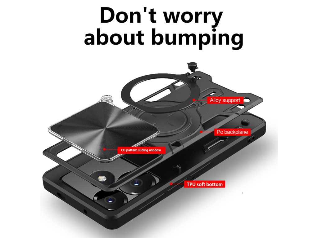 Šetři rodinný rozpočet investováním pouze jednou do multifunkčního, nezbytného produktu. Pouzdro Xiaomi Redmi 13 je vybaveno otočným ocelovým kroužkem jako stojan na telefon, aby usnadnilo sledování mediálního obsahu v krajinném formátu.