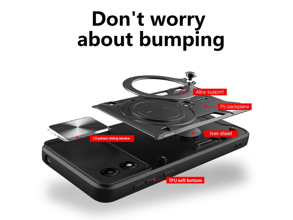 Ušetřete rodinný rozpočet investováním jednou do multifunkčního, nepostradatelného produktu. Pouzdro Motorola Moto E13 je vybaveno otočným kroužkem z nerezové oceli jako stojan na telefon, aby usnadnilo sledování médií v režimu na šířku.