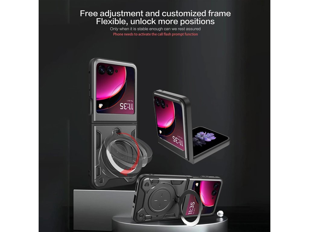 Ušetřete rodinný rozpočet investováním jednou do multifunkčního, nepostradatelného produktu. Pouzdro Motorola Razr 50 je vybaveno otočným kroužkem z nerezové oceli jako stojánek pro telefon pro usnadnění sledování médií v režimu na šířku.