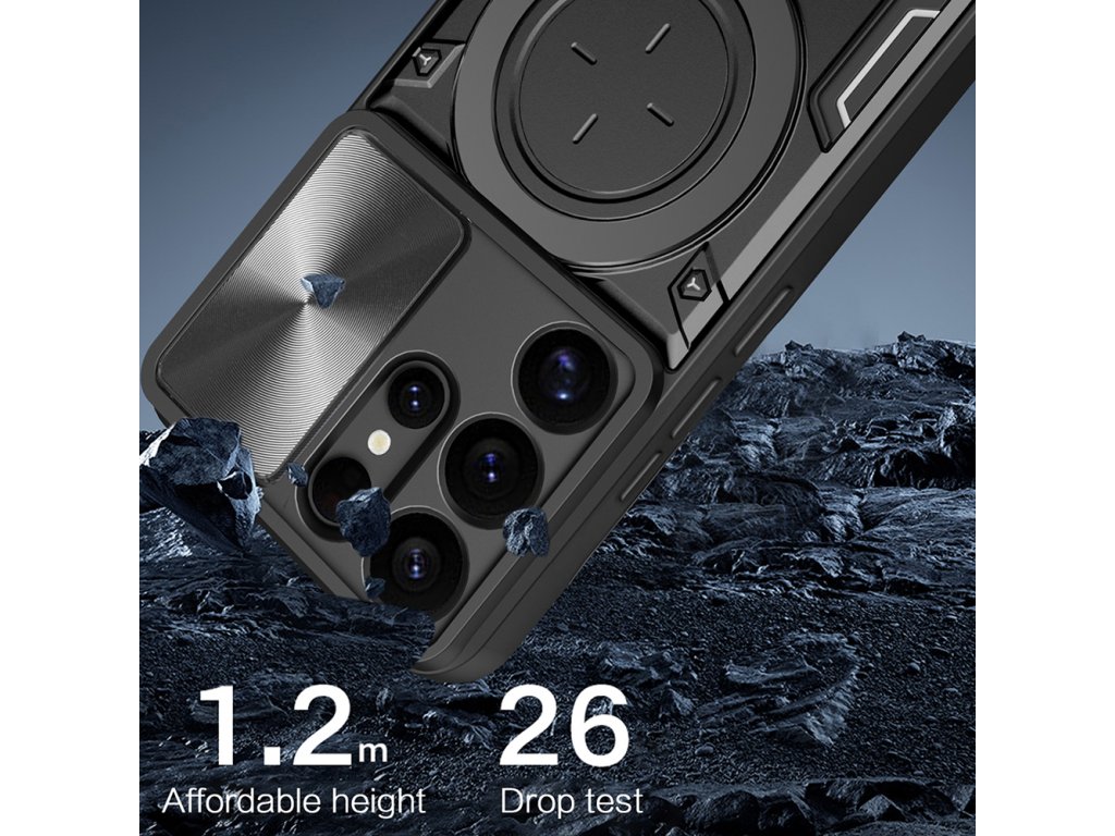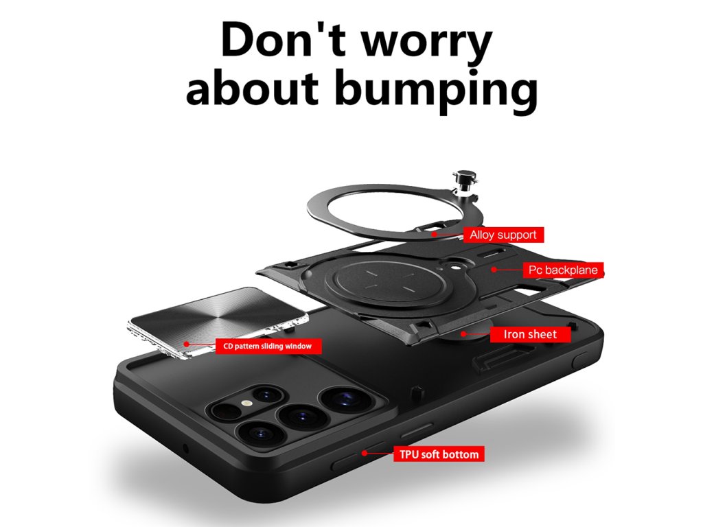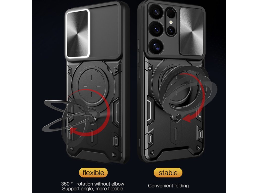 Ušetři rodinný rozpočet investicí do jediného multifunkčního, nezbytného produktu. Pouzdro Samsung Galaxy S25 Ultra je vybaveno otočným kroužkem z nerezové oceli, který slouží jako stojan na telefon, a usnadňuje tak sledování mediálního obsahu v režimu na šířku.