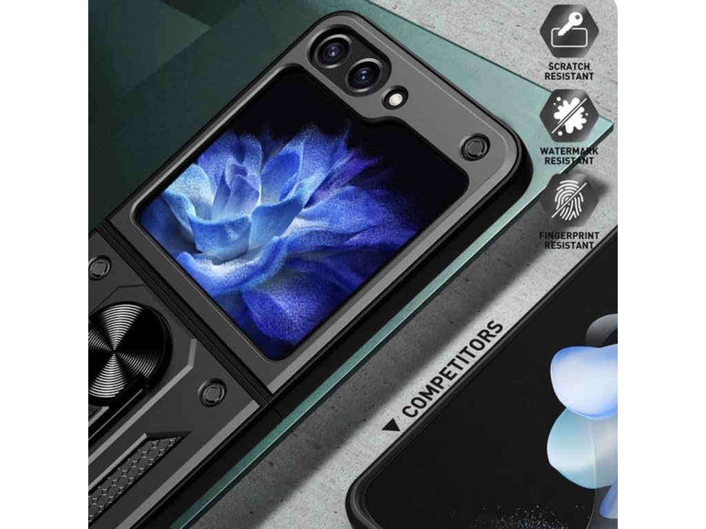 Kryt na Samsung Galaxy Z Flip5 s ochranou pro kamery a prstencovým držákem⭐je zde pro vás! Pořiďte si hned teď pouzdro proti nárazům Techsuit! Zamilujete si ho!