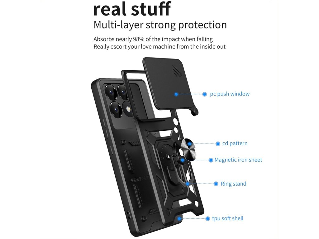 Kryt Xiaomi Poco F6 Pro s ochranou pro fotoaparát a prstencovým držákem⭐je tu pro tebe! Pořiď si hned teď pouzdro proti nárazu Techsuit! Zamiluješ si ho!