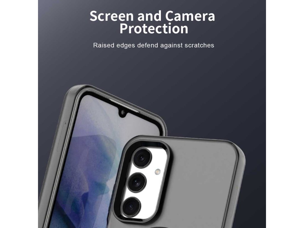 Tenké pouzdro Samsung Galaxy A25 5G má diskrétně zvýšené hrany, které vytvářejí odstup mezi citlivými povrchy a jakýmikoli podpěrnými plochami.