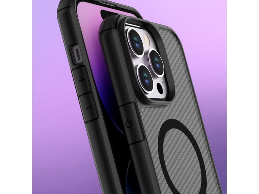 Techsuit CarbonFuse MagSafe obal na - iPhone 15 Plus - Černá