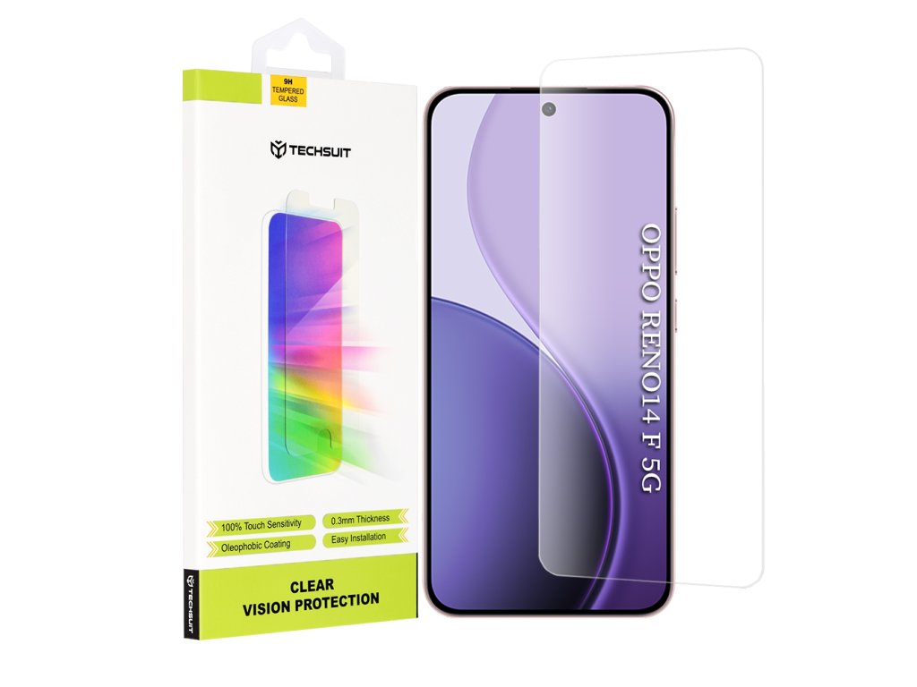 Ochranné sklo Oppo Reno14 F⭐ originální Techsuit je nejlepší volba pro ochranu displeje. Premium. 9H. Přátelské s pouzdrem. Samé výhody!