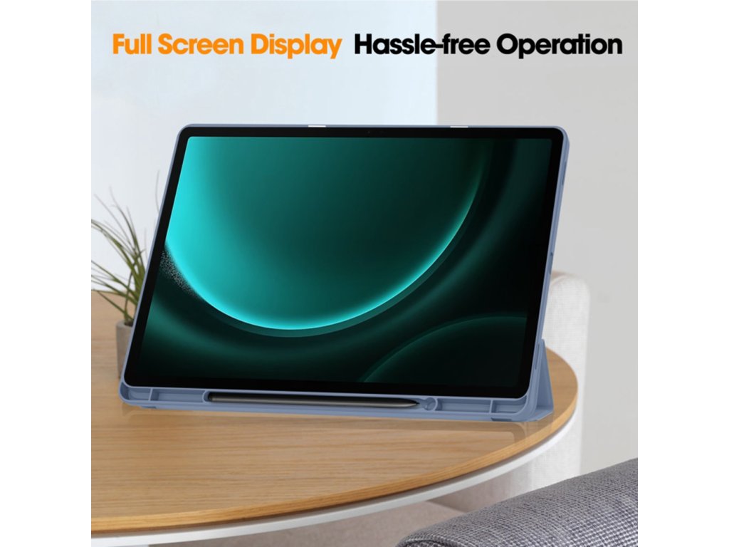 Toto flip cover pouzdro chrání celý povrch vašeho tabletu. Zbavte se problému škrábanců, prachu a otisků prstů s pomocí pouzdra 360 Samsung Galaxy Tab S9 FE Plus od Techsuit!