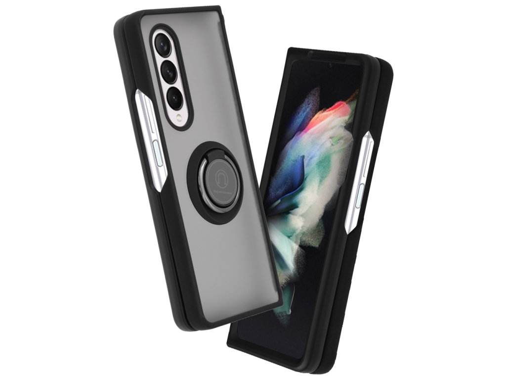 - Kryt pro Samsung Galaxy Z Fold3 5G je vybaven uprostřed stojanovým prstencem, který lze snadno přeměnit na stolní stojan.