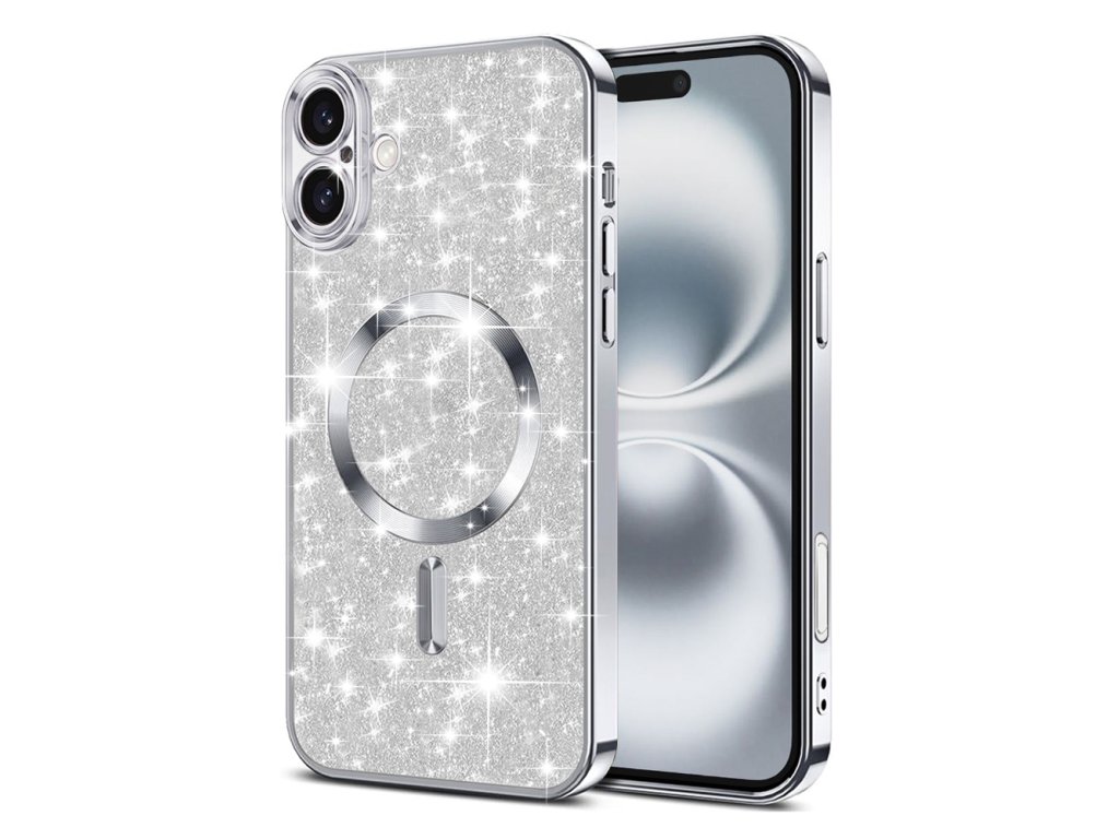 Techsuit Kryt Luxury Glitter s MagSafe pro iPhone 16 Plus – stříbrný