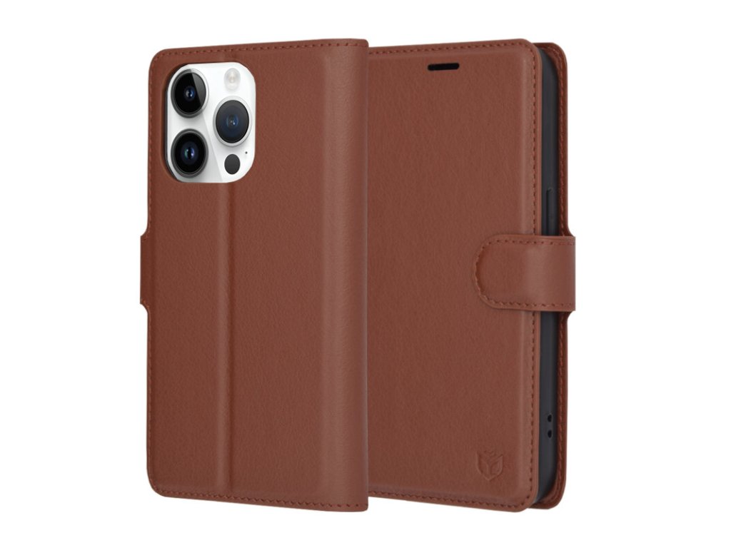 Techsuit Leather Folio pouzdro na iPhone 14 Pro – hnědý