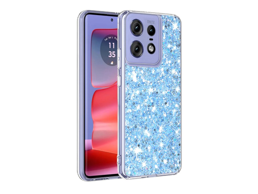 Techsuit lesklé glitrové pouzdro na Motorola Edge 50 Pro – modré