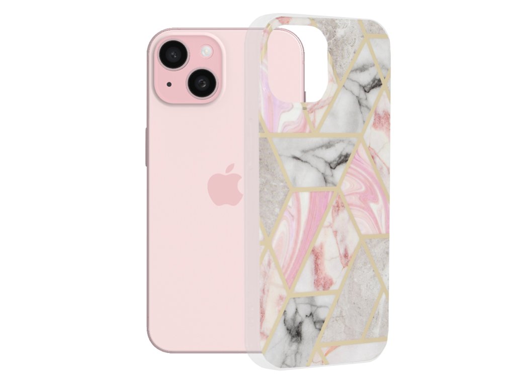 Techsuit Marble Series kryt na iPhone 15 – růžový Hex