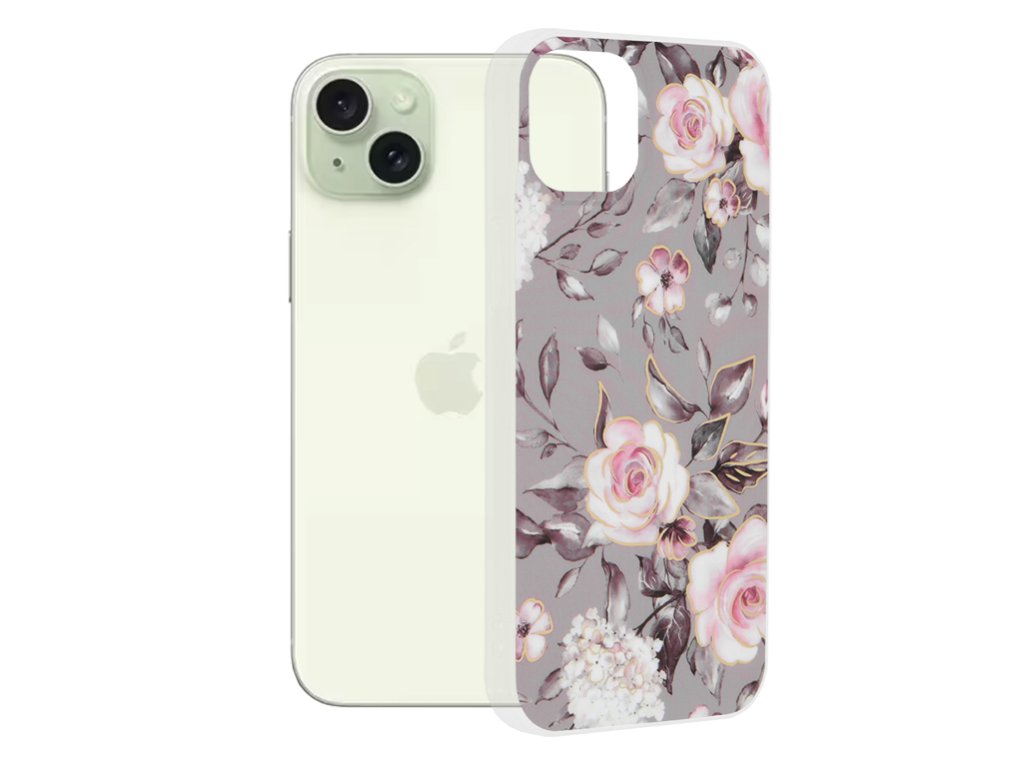 Techsuit Marble Series kryt na iPhone 15 Plus – Bloom of Ruth šedý