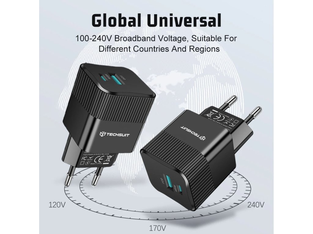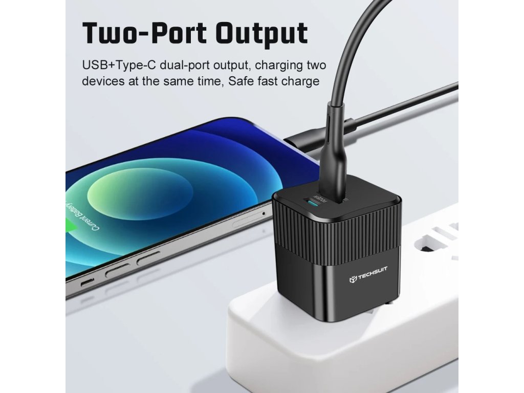 Nová univerzální nabíječka od Techsuit je navržena podle aktuálních technologických standardů. Takže napájecí adaptér Type-C má technologii GaN.