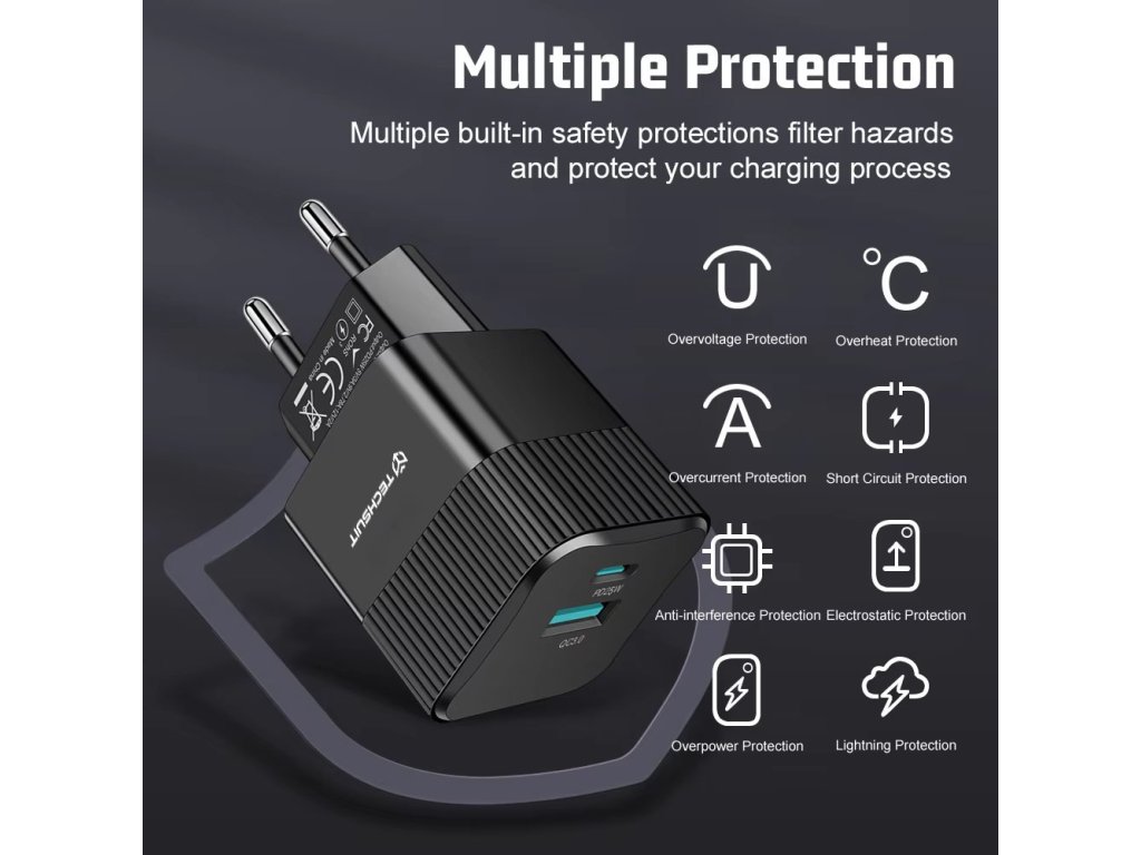 Víme, že chcete nabíječku do zásuvky od Techsuit! Právě proto doporučujeme tu nejlepší! Tento napáječ Type-C umí rychlé nabíjení.