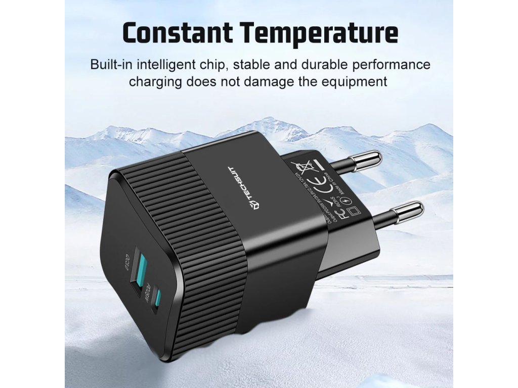 Techsuit Premium Tiny Series síťová nabíječka (CHPD216) - GaN, USB QC3.0, USB-C PD25W - černá
