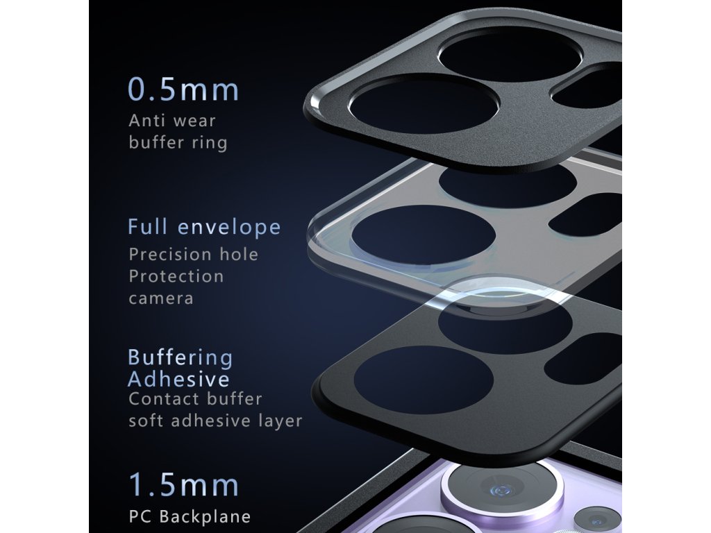 Zvýšené okraje pouzdra Oppo Reno13 F 5G obklopují kamery a displej, čímž zabraňují přímému kontaktu s tvrdými povrchy.