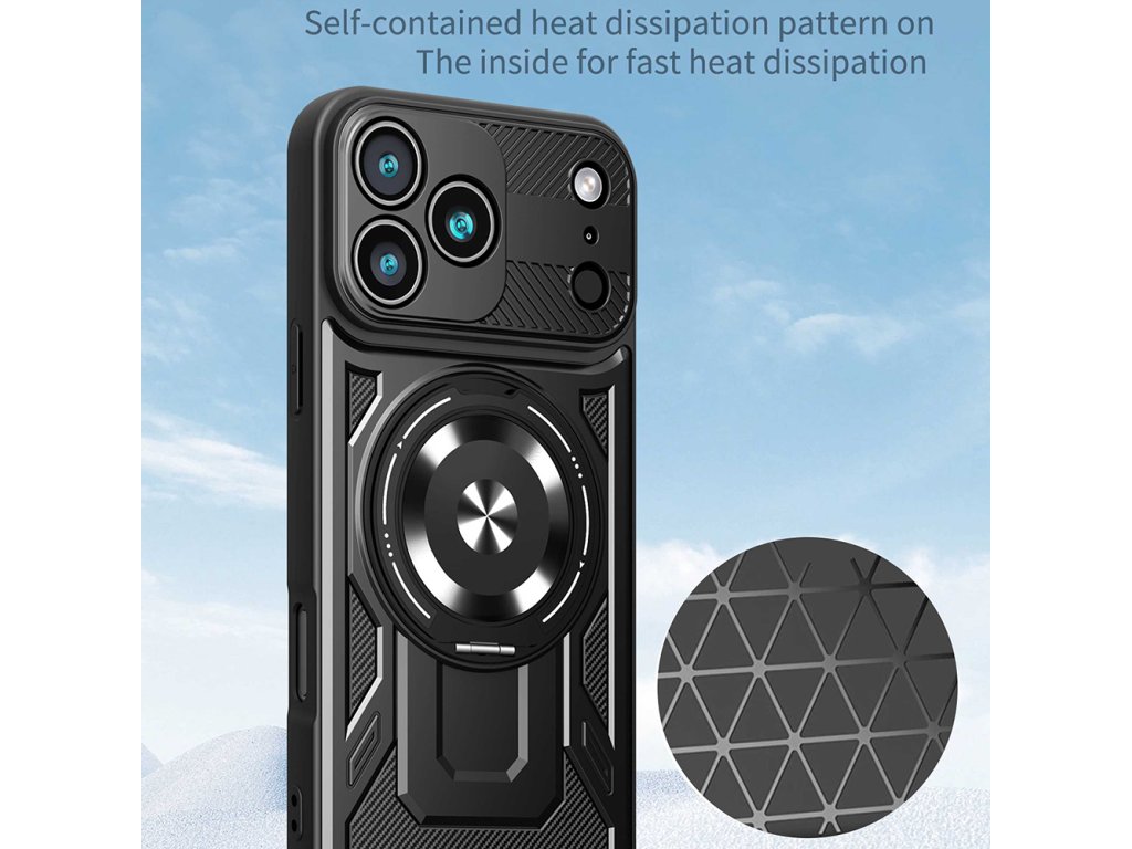 Design dominuje pevný, průmyslový rám s protiskluzovými texturami a ergonomickými úchyty. Pokud je pro vás ochrana telefonu prioritou, vyberte si tento odolný obal.