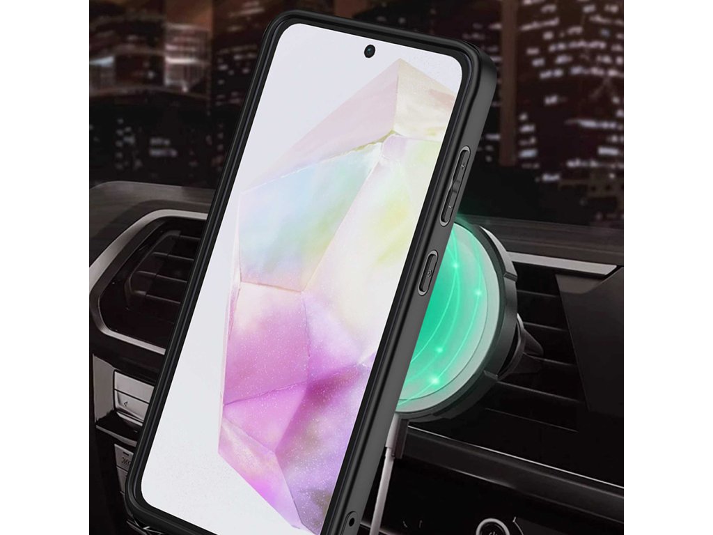 Zadní strana obsahuje ultra-odolný MagSafe kroužek, perfektně sladěný pro kompatibilitu se všemi magnetickými doplňky. Vychutnejte si výhody MagSafe pouzdra Samsung Galaxy A35 5G!