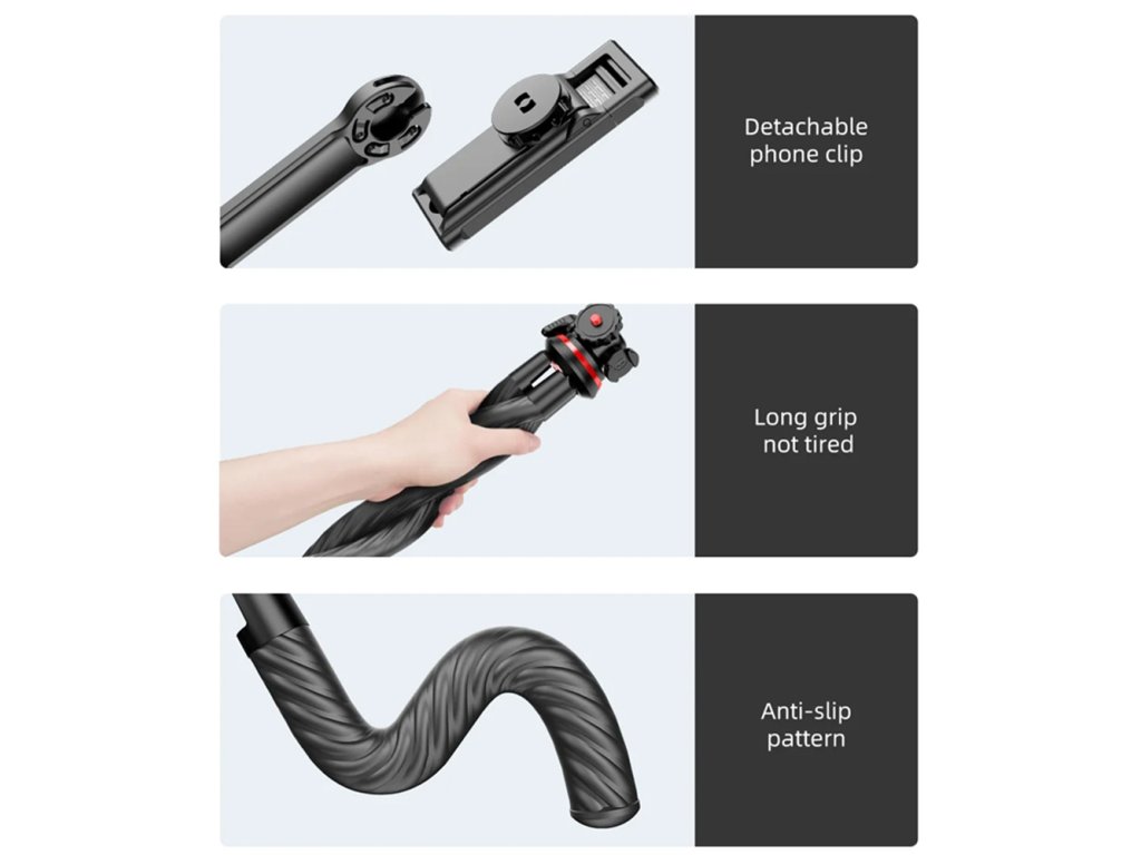 Techsuit Selfie Tyč (C02) - pro Telefony a Akční Kamery, s Flexibilním Stativem, 43 cm - Černá