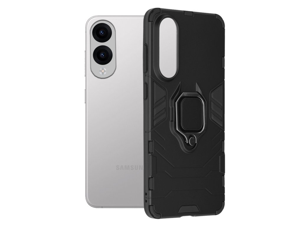 Kryt Samsung Galaxy S25 Edge je vybaven kroužkem na telefon, který slouží i jako stolní držák. Obsahuje kovovou destičku kompatibilní s magnetickými auto držáky.