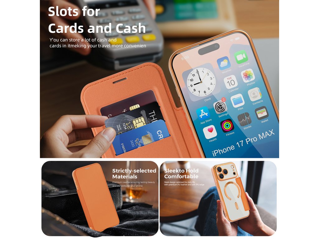 Techsuit - SmartMag Book Case magnetický knížkový obal pro iPhone 17 Pro Max - oranžový