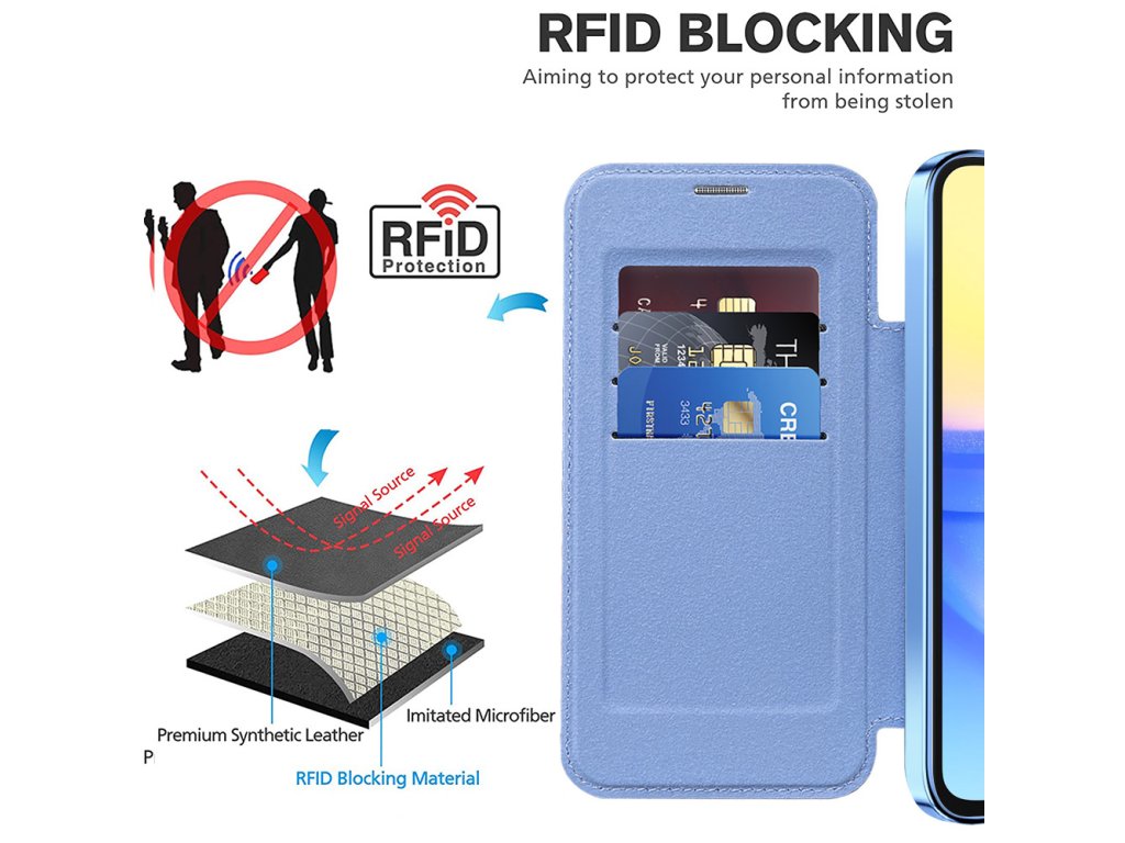 Pouzdro Samsung Galaxy A15 4G peněženka umožňuje okamžité zarovnání s jakýmkoli MagSafe příslušenstvím bez klouzání a rušení.