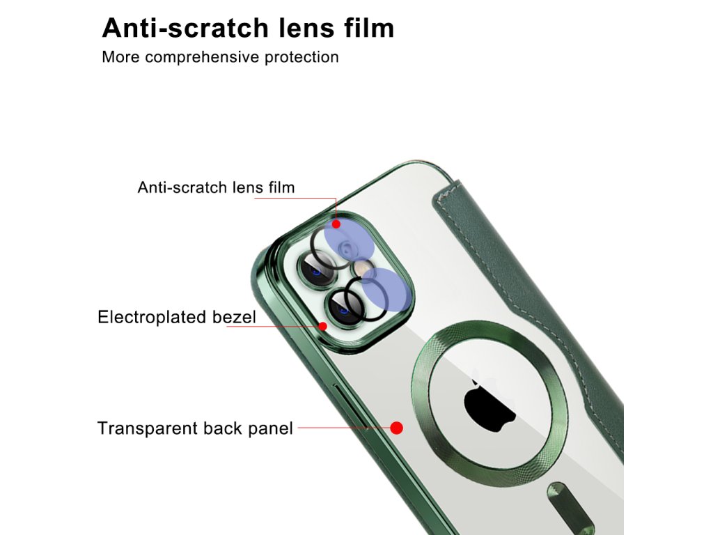 Pouzdro na iPhone 11 typu peněženka umožňuje okamžité zarovnání s jakýmkoliv doplňkem MagSafe, bez skluzu a bez interferencí.