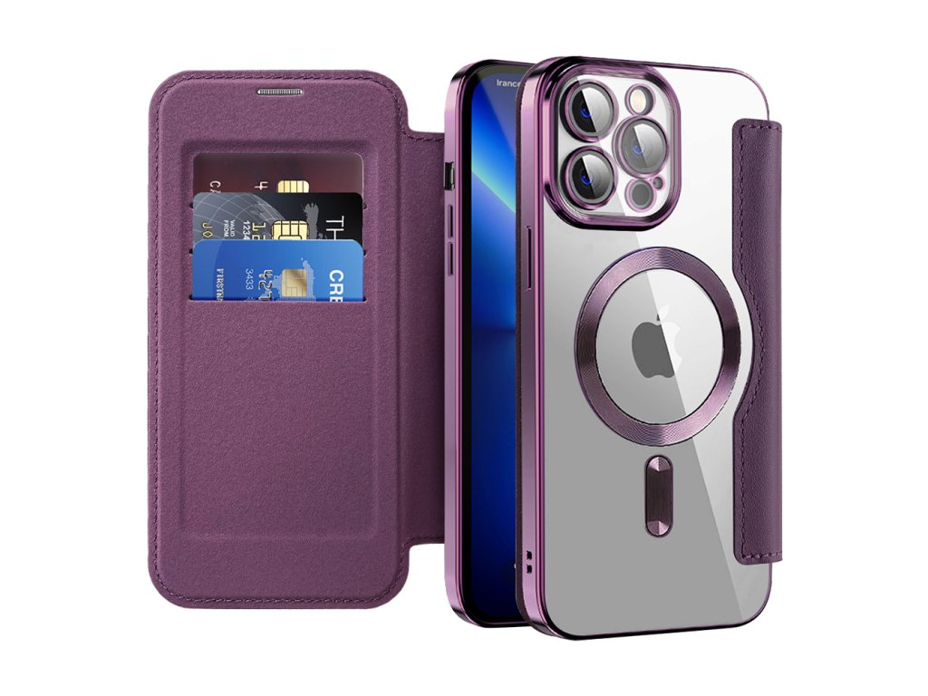 Techsuit - SmartMag Book pouzdro na iPhone 13 Pro Max - fialové