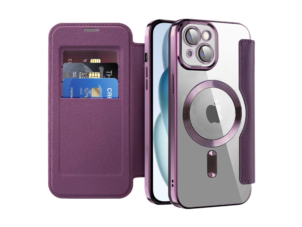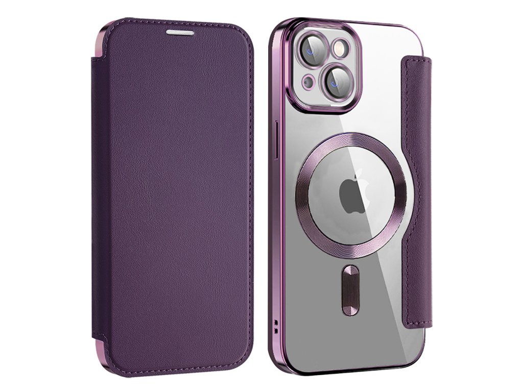 Techsuit - SmartMag Book pouzdro na iPhone 15 Plus - fialové
