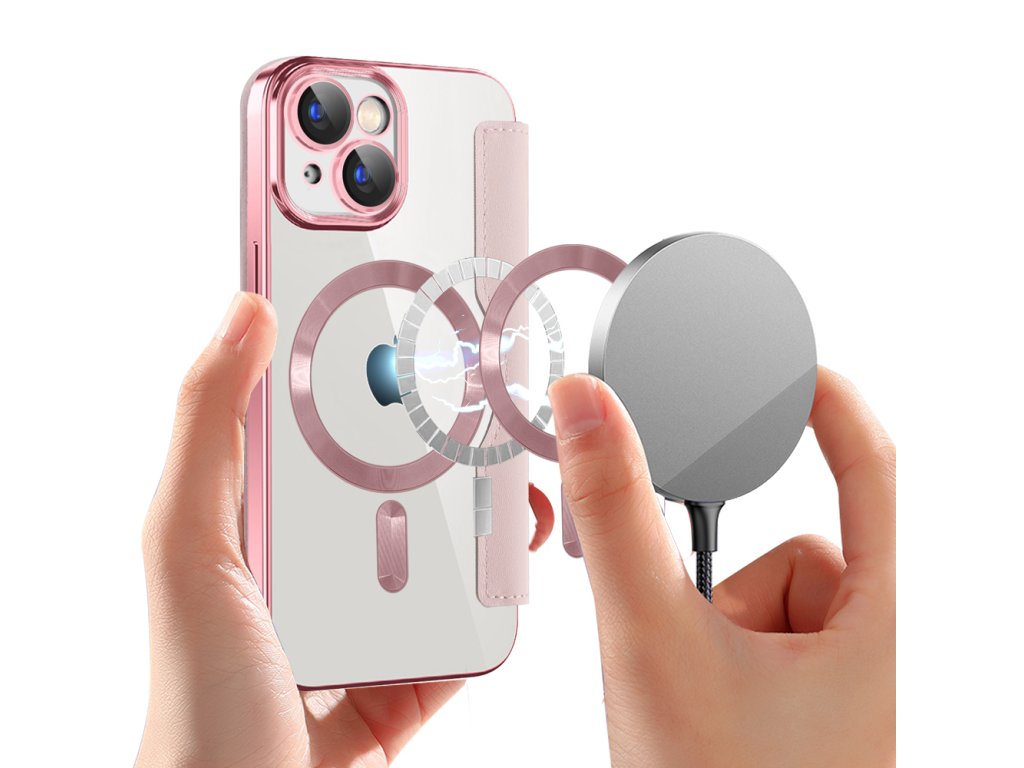 Techsuit - SmartMag Book pouzdro na iPhone 15 Plus - růžové