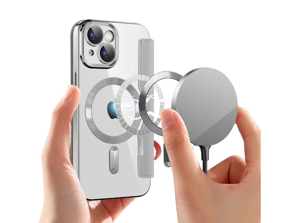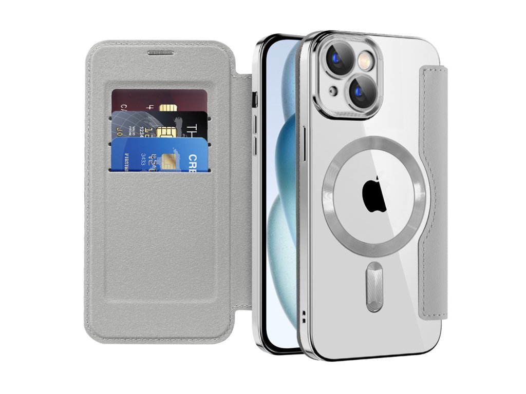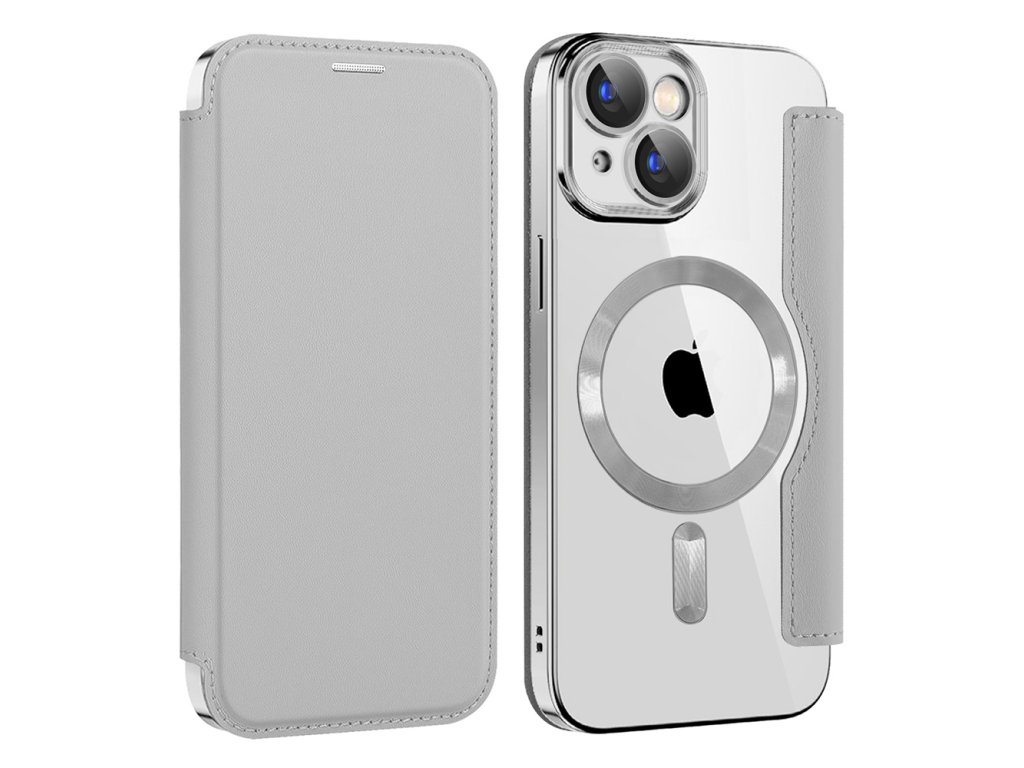 Techsuit - SmartMag Book pouzdro na iPhone 15 Plus - šedé